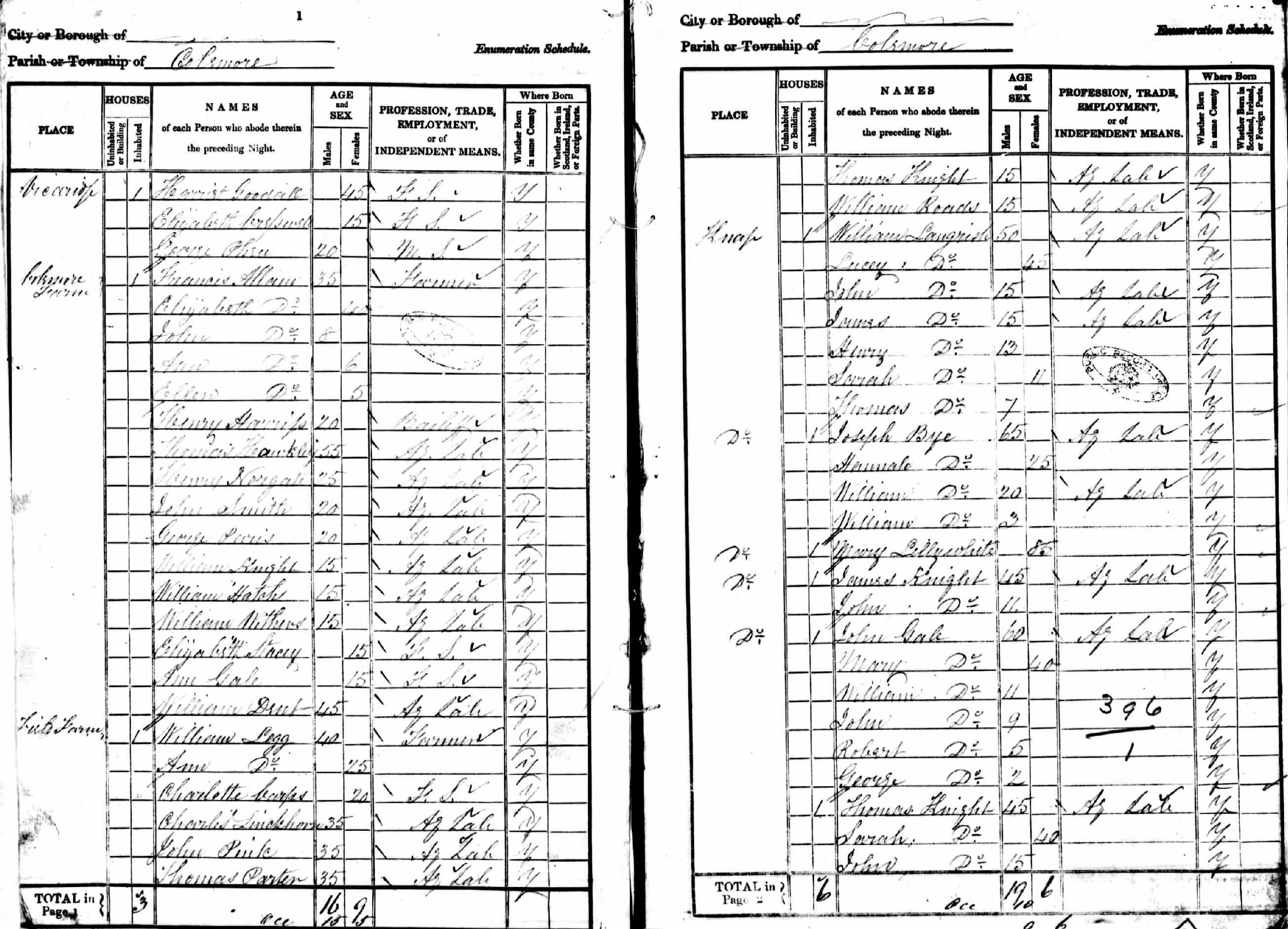 Colemore 1841 Census Returns - Taken on the night of Sunday 6th June 1841