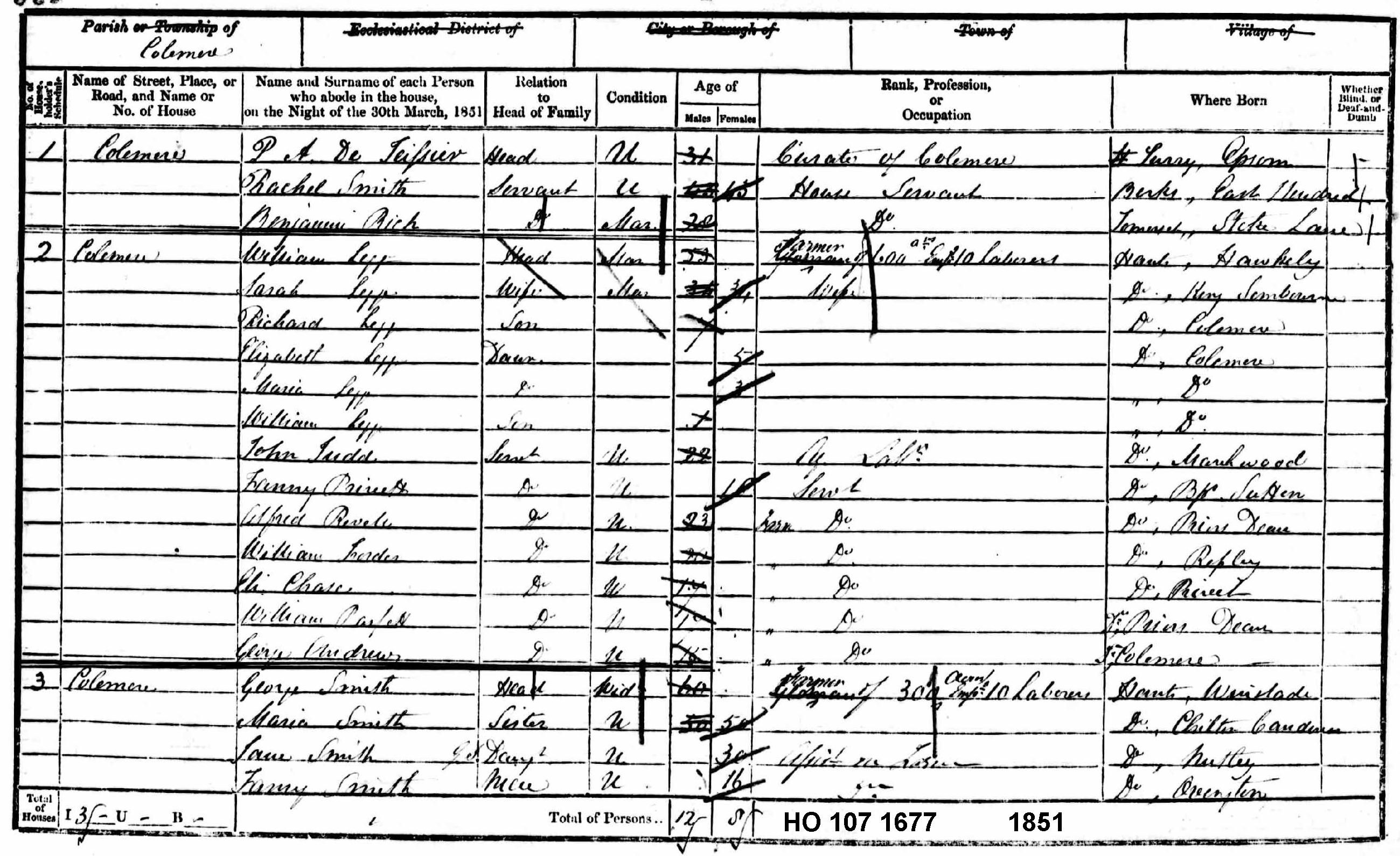 Colemore 1851 Census Returns - Taken on the night of Sunday 30th March 1851