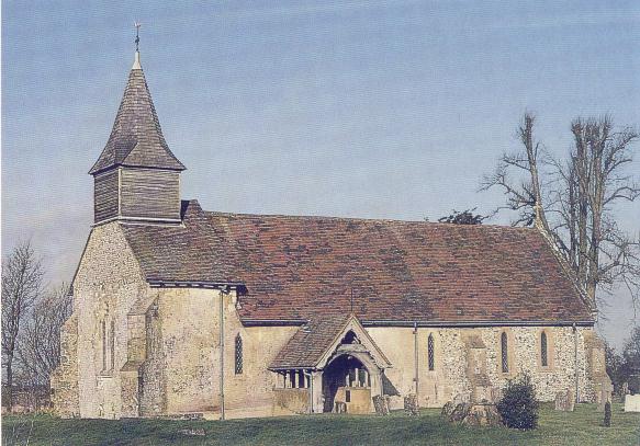 This remote and charming upland church has had a stormy history since it was built in the 12th century. Cruciform, until its south transept was demolished in 1670, it has several times over the centuries been declared 'ruinous' and then repaired; now it is again in good order and cherished. Inside its two bells (c 1380 and 1627) suspended above the west end below the bell-turret are a curiosity. The 12th century Purbeck marble font and 16th century screen are notable and there are fine memorials in the nave. (6 miles south of Alton off A32 - SU 706 308)